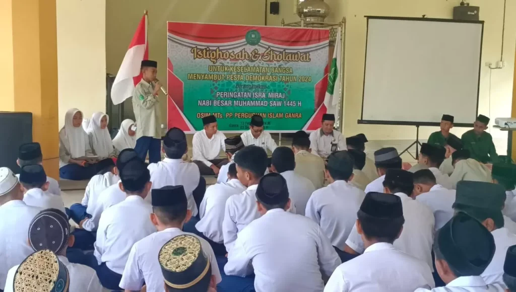 di MTs Pondok Pesantren Perguruan Islam Ganra menggelar Istighosah dan Sholawatan di Masjid Nurul Ilmi Kompleks MTs Pondok Pesantren Perguruan Islam Ganra, Selasa (13/2).